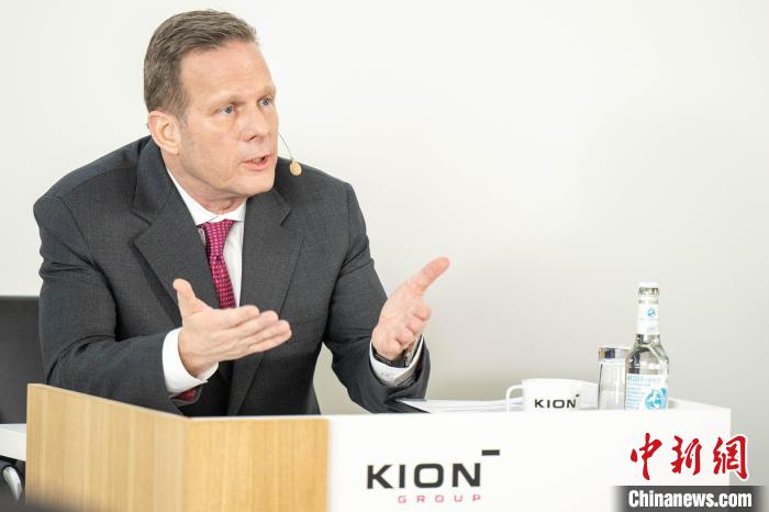 當(dāng)?shù)貢r間29日,德國凱傲集團(tuán)(KION Group)在法蘭克福召開新聞發(fā)布會發(fā)布2023財年業(yè)績。 (凱傲集團(tuán)供圖)