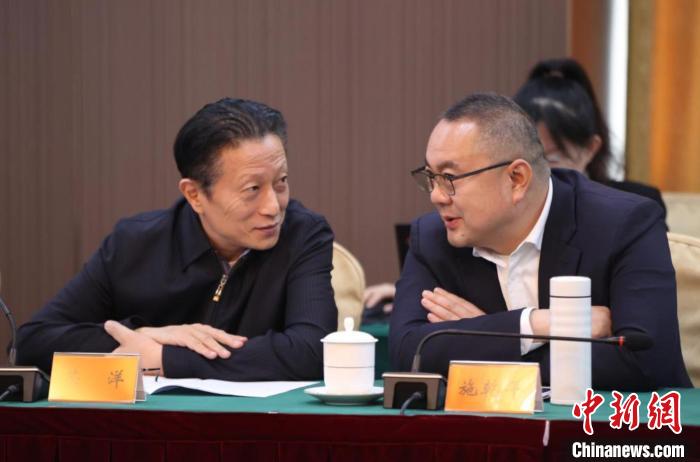 3月5日,全國政協(xié)十四屆二次會(huì)議僑聯(lián)界小組會(huì)議在北京舉行。全國政協(xié)委員施乾平(右)與榮洋(左)交流。中新社記者 蔣啟明 攝