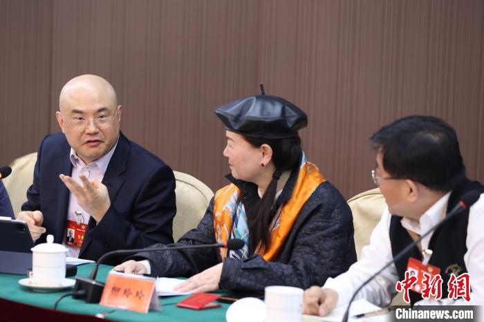 3月5日,全國政協(xié)十四屆二次會(huì)議僑聯(lián)界小組會(huì)議在北京舉行。圖為全國政協(xié)委員柳玲玲(中)和全國政協(xié)委員洪明基(左)。中新社記者 蔣啟明 攝