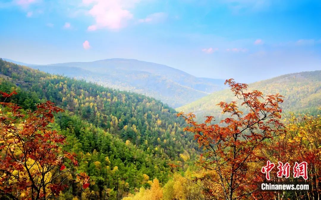 秋天,山嶺間層嶺盡染,似打翻調色盤。 內蒙古森工集團供圖