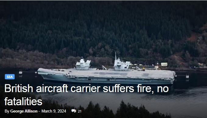 中新網(wǎng)3月10日電 據(jù)英國“UKDefenceJournal”網(wǎng)站、英國《獨(dú)立報(bào)》等多家英國媒體當(dāng)?shù)貢r(shí)間9日報(bào)道,??吭谔K格蘭格倫馬蘭的英國航空母艦“伊麗莎白女王”號(hào)發(fā)生火災(zāi)。目前尚無人員傷亡報(bào)告。