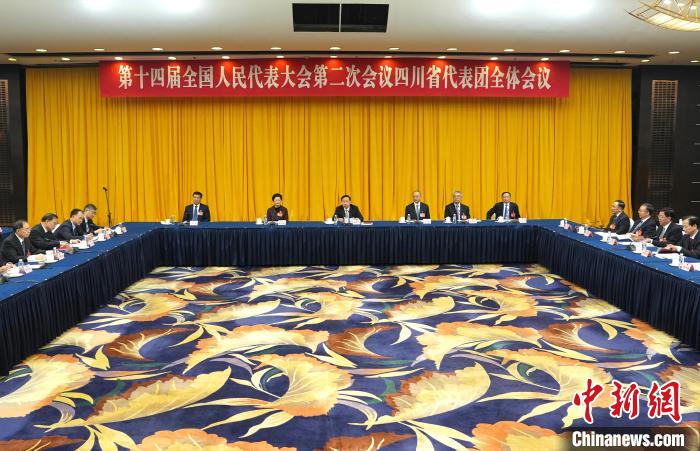 3月10日,出席十四屆全國(guó)人大二次會(huì)議的四川代表團(tuán)舉行開(kāi)放團(tuán)組會(huì)議。中新社記者 崔楠 攝