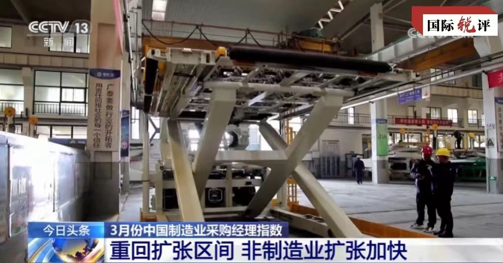 中國官方最新數(shù)據(jù)顯示,今年3月的PMI、非制造業(yè)商務(wù)活動(dòng)指數(shù)和綜合PMI產(chǎn)出指數(shù)分別為50.8%、53.0%和52.7%,比上月上升1.7、1.6和1.8個(gè)百分點(diǎn),均位于50%以上的擴(kuò)張區(qū)間。其中3月份制造業(yè)活動(dòng)出現(xiàn)半年來首次擴(kuò)張,并且創(chuàng)下一年來新高。對(duì)此,美國彭博社等外媒稱,這表明中國制造業(yè)前景趨于樂觀,整體經(jīng)濟(jì)正在企穩(wěn)。