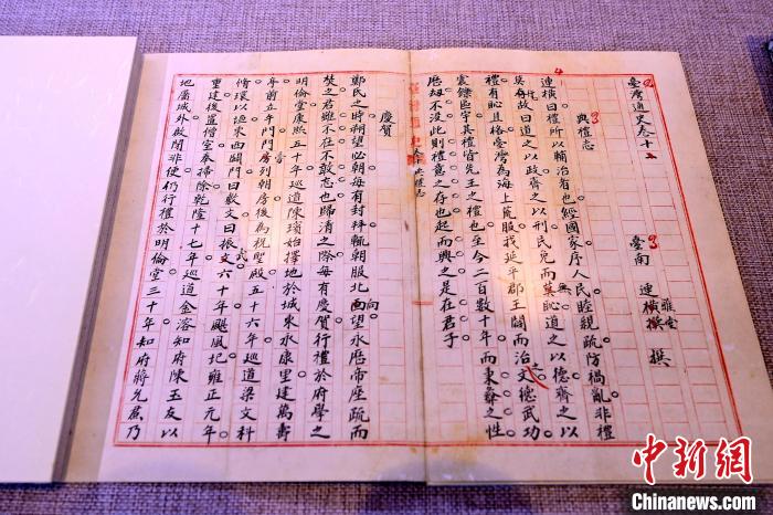 圖為連橫《臺(tái)灣通史》手稿殘卷影印本。 中新社記者 張金川 攝