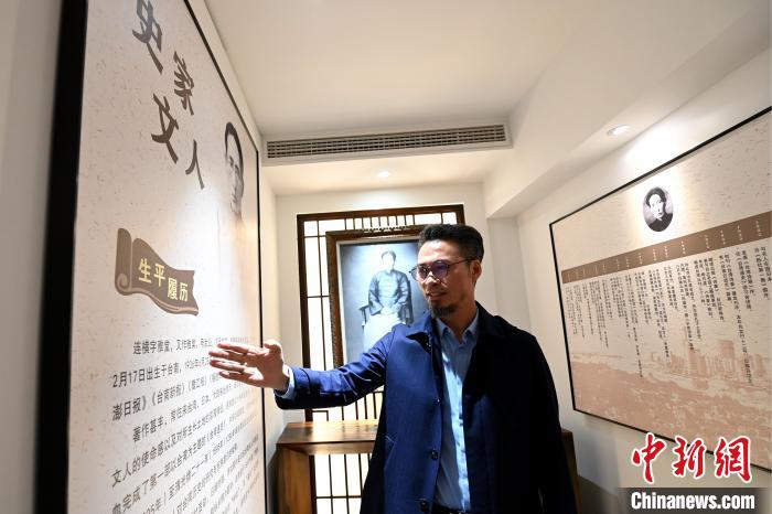 福建省連橫文化研究院理事長(zhǎng)連明富向參觀者介紹連橫文化?!≈行律缬浾?張金川 攝