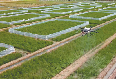 現(xiàn)代化農(nóng)機設(shè)備在農(nóng)業(yè)生產(chǎn)過程中的運用,極大提高了農(nóng)業(yè)生產(chǎn)效率。圖為在印度尼西亞西爪哇省卡拉旺縣的一處水稻試驗田里,中國生產(chǎn)的農(nóng)用無人機進(jìn)行殺蟲作業(yè)。