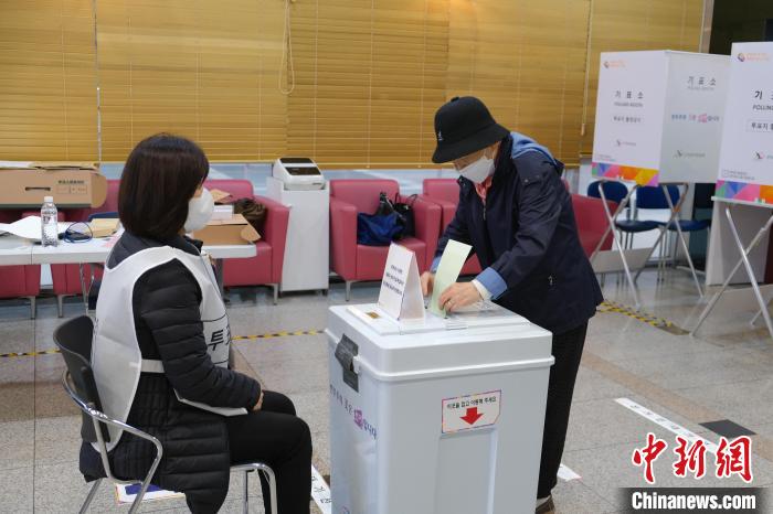 中新社記者當(dāng)天上午在首爾市廣津區(qū)一處投票站看到,選民陸續(xù)來到投票站,在完成現(xiàn)場登記并領(lǐng)取選票后,有序進入寫票所內(nèi)投票。