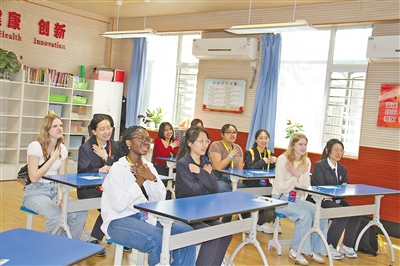 在石家莊外國語學校,中美兩國學生一起學習中國古詩。