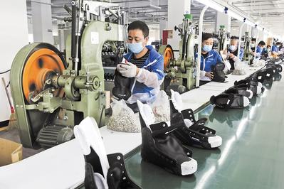 在張家口高新區(qū)冰雪運(yùn)動裝備產(chǎn)業(yè)園,工人在一家冰球鞋生產(chǎn)企業(yè)車間工作。新華社發(fā)