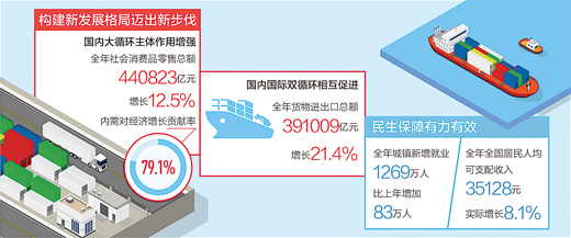 “過(guò)去一年,經(jīng)過(guò)全國(guó)上下共同努力,我國(guó)經(jīng)濟(jì)發(fā)展和疫情防控雙雙保持全球領(lǐng)先地位,國(guó)民經(jīng)濟(jì)總體運(yùn)行在合理區(qū)間,全年發(fā)展的主要目標(biāo)任務(wù)已經(jīng)完成,構(gòu)建新發(fā)展格局邁出新步伐,高質(zhì)量發(fā)展取得新成效,‘十四五’實(shí)現(xiàn)了良好開(kāi)局?!?1月17日,在國(guó)新辦新聞發(fā)布會(huì)上,國(guó)家統(tǒng)計(jì)局局長(zhǎng)寧吉喆說(shuō)。