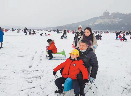 圖為游客在頤和園樂(lè)享冰雪運(yùn)動(dòng)。作為第八屆北京市屬公園冰雪游園會(huì)活動(dòng)內(nèi)容之一的頤和園“圓夢(mèng)冬奧,相約頤和”項(xiàng)目,今年首次設(shè)置了雪上娛樂(lè)項(xiàng)目,讓市民不出京城就可親身感受冰雪魅力。 本報(bào)記者 吳鏑攝