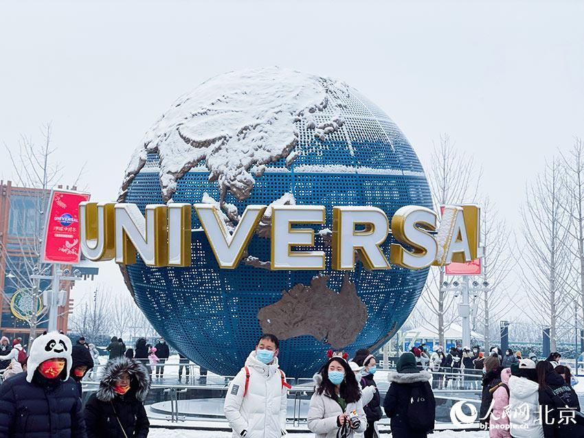 在紛紛揚(yáng)揚(yáng)的雪花中,北京環(huán)球度假區(qū)開(kāi)啟了首個(gè)“環(huán)球中國(guó)年”季節(jié)性主題活動(dòng)。人民網(wǎng) 董兆瑞攝
