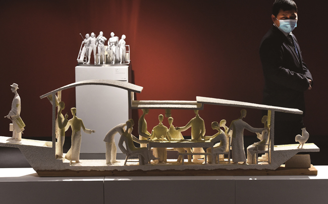現(xiàn)場(chǎng),一件件圍繞嘉興紅船和歷史名人創(chuàng)作的紅色文化主題雕塑,以其新穎的創(chuàng)意讓參觀者連連稱贊。
