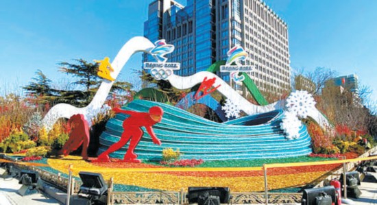 “綠色冬奧”主題花壇將運(yùn)動(dòng)和自然融為一體。