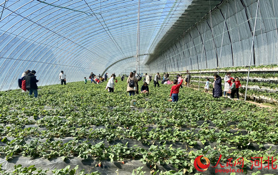 正定采摘大棚內(nèi),市民朋友在采摘草莓,體驗(yàn)農(nóng)耕之樂。 人民網(wǎng) 付兆颯攝