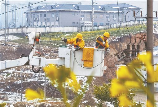 2月24日,田間地頭的白雪尚未融化,油菜花卻已悄然開放。國(guó)家電網(wǎng)洪江市供電公司工作人員在黔城鎮(zhèn)雙溪社區(qū)對(duì)10千伏巖垅線016號(hào)桿帶電解除引流線,確保線路正常供電。 胡浩 攝