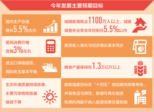 國內(nèi)生產(chǎn)總值增長5.5%左右,是今年發(fā)展主要預期目標之一。“經(jīng)濟增速預期目標的設定,主要考慮穩(wěn)就業(yè)保民生防風險的需要,并同近兩年平均經(jīng)濟增速以及‘十四五’規(guī)劃目標要求相銜接。”北京大學經(jīng)濟與管理學部副主任金李委員表示,各方面要圍繞貫徹這些重大政策和要求,細化實化具體舉措,形成推動發(fā)展的合力。