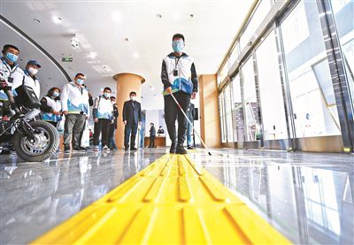 北京2022年冬殘奧會(huì)正在舉行,殘奧運(yùn)動(dòng)員在賽場(chǎng)上的奮勇拼搏贏得了世界的掌聲。作為冬殘奧會(huì)的舉辦地之一,近年來,北京市的無障礙環(huán)境服務(wù)保障水平顯著提升且更有溫度。昨天,剛啟用不久的北京市殘疾人服務(wù)示范中心(以下簡(jiǎn)稱“示范中心”)迎來了16位城市志愿者。他們?cè)诙瑠W組委無障礙體驗(yàn)員的帶領(lǐng)下,戴上眼罩體驗(yàn)盲道、坐在匯愛影廳里“聽”電影、體驗(yàn)科技助殘的力量。