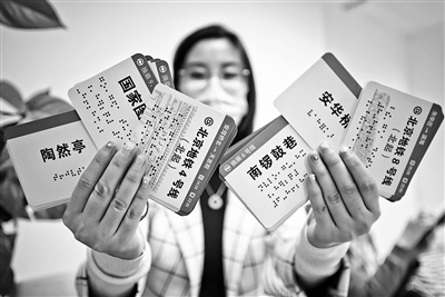 北京青年報記者了解到,《北京地鐵盲文線路卡》采用國家通用盲文書寫,盲人乘客可以通過摸讀手冊了解到地鐵沿線經(jīng)過的各站,可以了解起點和終點的首末車時間,還可以通過凸起的地鐵線路示意圖了解整個路線的輪廓。線路卡使用最新的“3D綠色盲文印刷技術(shù)”和現(xiàn)代感十足的環(huán)裝方法,讓整個線路卡既時尚又便攜。