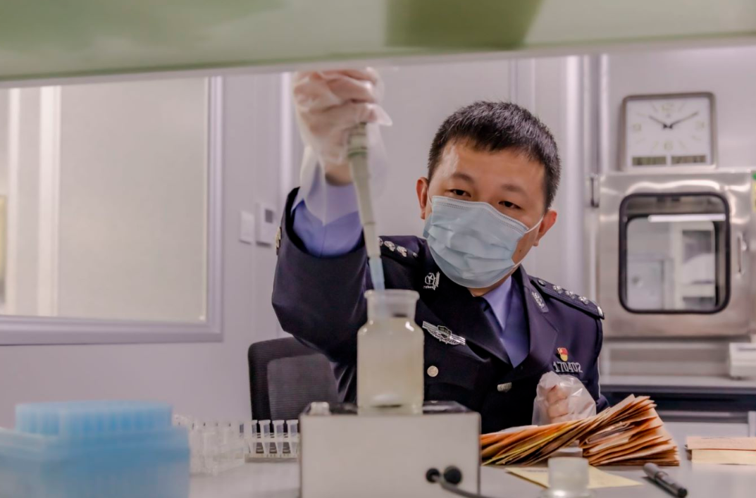 柯偉力在分局DNA實驗區(qū)。臺州公安供圖