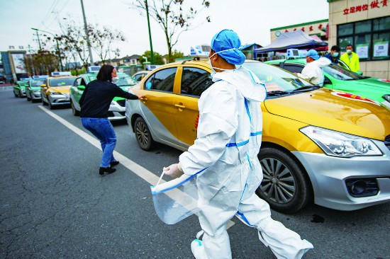 3月19日,金華金東區(qū)東孝街道核酸檢測點,“的姐”方秋丹載著醫(yī)護(hù)人員快速轉(zhuǎn)運剛剛檢測的核酸樣本。這幾天,東孝街道各個核酸檢測現(xiàn)場,一批又一批轉(zhuǎn)運司機(jī)配合工作人員爭分奪秒轉(zhuǎn)運核酸檢測樣本,與時間賽跑,為核酸檢測工作保駕護(hù)航。(胡肖飛)