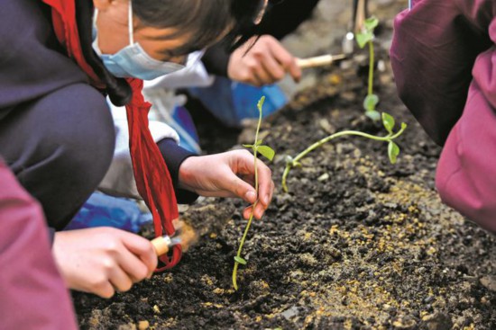 3月23日,嘉興一學(xué)校種植園,學(xué)生們在各班的“責(zé)任田”里忙著種植各種蔬菜和花卉。學(xué)校希望通過豐富多彩的種植活動,讓孩子們在親近植物、探究植物的過程中,提升綜合探究學(xué)習(xí)能力,同時也更好地推進(jìn)學(xué)校“雙減”政策的落地。(馮玉坤)