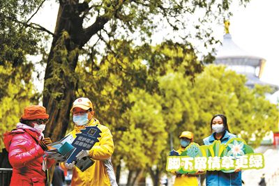 據(jù)天壇公園相關負責人介紹,為了強化文明游園理念,盡可能地減少園內(nèi)不文明游園行為,天壇公園全面啟動春季文明游園宣傳行動。天壇公園由75名職工組成巡視固定崗,每日全天候在園內(nèi)重點位置巡視不少于96次,同時出動6輛電動巡邏車、3輛電動巡邏自行車對全園及重點區(qū)域加強巡視值守;在周末及節(jié)假日由首都公共文明引導員、社會志愿者組成流動哨,重點開展不文明游園行為勸導引導工作。