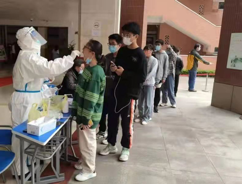 由于學校實行準封閉管理,西藏學生長期住校。面對嚴峻的疫情防控形勢,及時安全的核酸檢測成為保障學生安全的頭等大事。上海市第一人民醫(yī)院得知學校希望醫(yī)務(wù)人員能進校園對住校師生員工進行核酸檢測的要求后,克服任務(wù)重、人手緊的困難,每周抽調(diào)醫(yī)護人員志愿到學校,解決核酸檢測的實際困難,為西藏班學生送去關(guān)心和溫暖。(龍鋼)