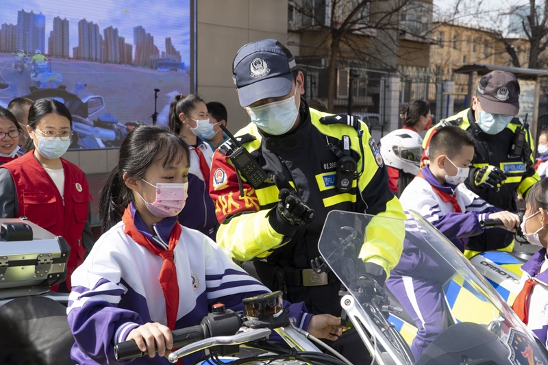 活動中,龍城鐵騎隊員通過案例分析、現(xiàn)場提問等方式,與學生現(xiàn)場交流互動,通過詳細講解日常上學、放學期間乘車、走路、騎車等方面的交通安全常識,教會學生如何“知危險會避險、安全文明出行”。