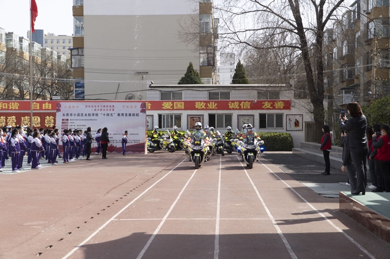 人民網(wǎng)太原3月28日電(記者 雷昊)今日是第27個全國中小學生安全教育日,為保證小學生安全快樂健康成長,進一步強化小學生交通安全意識,以“知危險、會避險”為主題的全國中小學生安全教育日活動在太原市小店區(qū)太航學校舉行,龍城鐵騎隊員們?yōu)橥瑢W們上了一場生動的安全教育課。