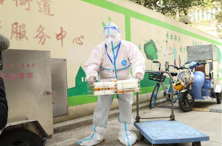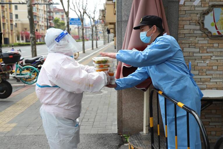 人民網上海4月1日電 (葛俊俊)上海浦西核酸篩查首日。上午10:00,送餐員馬俊紅和張紅喜帶著剛剛出鍋的230份助老餐出發(fā)了。