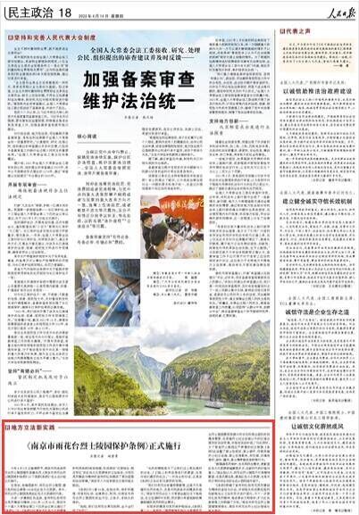 為進(jìn)一步賡續(xù)紅色血脈、宣傳和弘揚(yáng)雨花臺英烈事跡與精神,2021年12月30日,南京市十六屆人大常委會第三十四次會議審議通過了《條例》?!斑@一《條例》與《南京市紅色文化資源保護(hù)利用條例》有效銜接,形成南京‘點(diǎn)面結(jié)合、相互呼應(yīng)’的紅色文化資源保護(hù)立法體系,為雨花英烈事跡與精神的宣傳和弘揚(yáng)提供了更加堅強(qiáng)的法治保障。”南京市人大法制委主任委員姚正陸說。