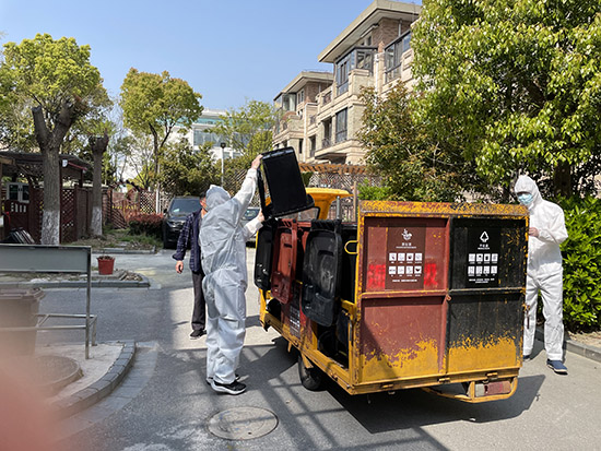 除了保安,保潔人員也缺位了。4月7日,姚書(shū)記找居委會(huì)要來(lái)十幾個(gè)垃圾桶,組織志愿者收集垃圾。因?yàn)?天沒(méi)收過(guò)垃圾,垃圾又多又臭。高杰、趙連均、俞衛(wèi)忠等志愿者沖在前面,他們一改平日“西裝革履”的打扮,化身“保潔員”,當(dāng)被問(wèn)及“4天不收的垃圾臭不臭”時(shí),他們笑笑說(shuō),“又臟又臭是真的,不過(guò)大家都換位思考,我們就收幾次而已,環(huán)衛(wèi)工人每天干才辛苦?!敝螅^(qū)每天就有鄰居輪流收垃圾,做到日產(chǎn)日清。一位鄰居在群里反映巡邏時(shí)發(fā)現(xiàn)路上落葉較多時(shí),大家又一呼百應(yīng),拿出自家的掃帚,一起把小區(qū)道路打掃干凈。