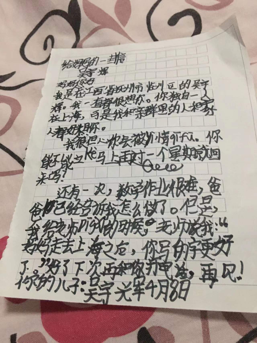 “我是后來(lái)才知道,兒子的這封信是瞞著家人寫的,并用奶奶的手機(jī)拍下來(lái)發(fā)給我?!睆垱_華告訴本網(wǎng),這是兒子給自己的第一封信,真的太感動(dòng)了,一定要認(rèn)認(rèn)真真的給他回一封信,話語(yǔ)中帶著哽咽。