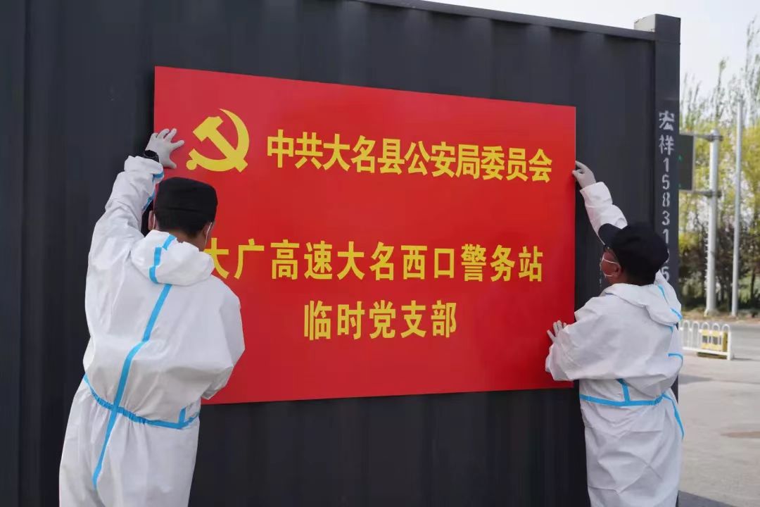 為加強(qiáng)疫情防控,大名公安充分發(fā)揮基層黨支部的戰(zhàn)斗堡壘作用和黨員干部先鋒模范作用,在一線設(shè)立臨時(shí)黨支部,做到關(guān)鍵時(shí)刻有組織在,關(guān)鍵崗位有黨員在?!芭R時(shí)黨支部的成立,既是廣大黨員沖鋒在前的‘催征鼓’,也是全體民警抗疫護(hù)民的‘作戰(zhàn)令’。”大名縣公安局政委李軍輝說。