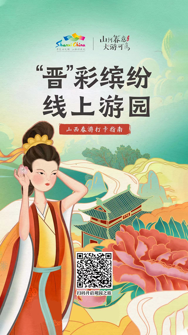 人民網太原4月20日電(桑莉媛)花開晉染、珍味晉有、芳華晉藝、匠心晉展。近日,山西省文化和旅游廳策劃推出了《晉彩繽紛·線上游園》互動H5,以四大板塊來展示山西春日之美,邀廣大網友一起線上游園,云賞山西好風光!