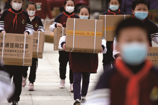 近日,嘉興秀洲一學(xué)校的愛心家長(zhǎng),為學(xué)校捐贈(zèng)了5萬(wàn)只口罩、七八百瓶洗手液和50多把額溫槍,助力學(xué)校疫情防控工作,筑牢安全防線。(馮玉坤)