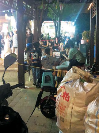 一路向西,類似的現(xiàn)象更是頻頻出現(xiàn),個別商家仍在做著“路邊攤”的生意。一名商戶告訴記者,因為點餐需要排隊,所以在便道上設(shè)置了等候區(qū),掃碼點餐時商戶已和顧客講明,只能點選打包帶走。記者眼見那些餐食果真裝進(jìn)打包餐盒,送到了所謂的等候區(qū),可是顧客拿到手并未離開,打開餐盒立刻大快朵頤,顯然等候區(qū)只是給堂食外擺打了個掩護(hù)。