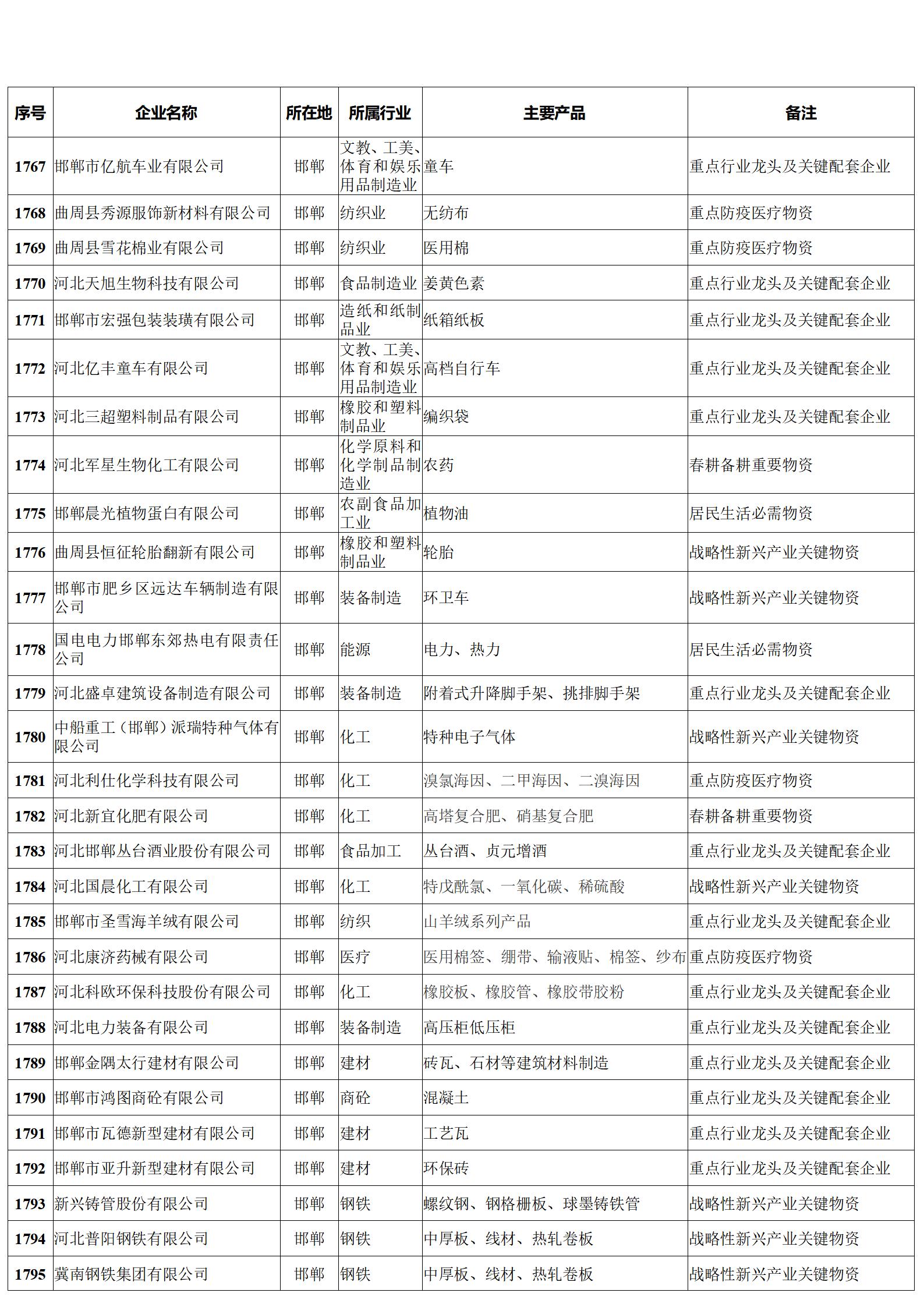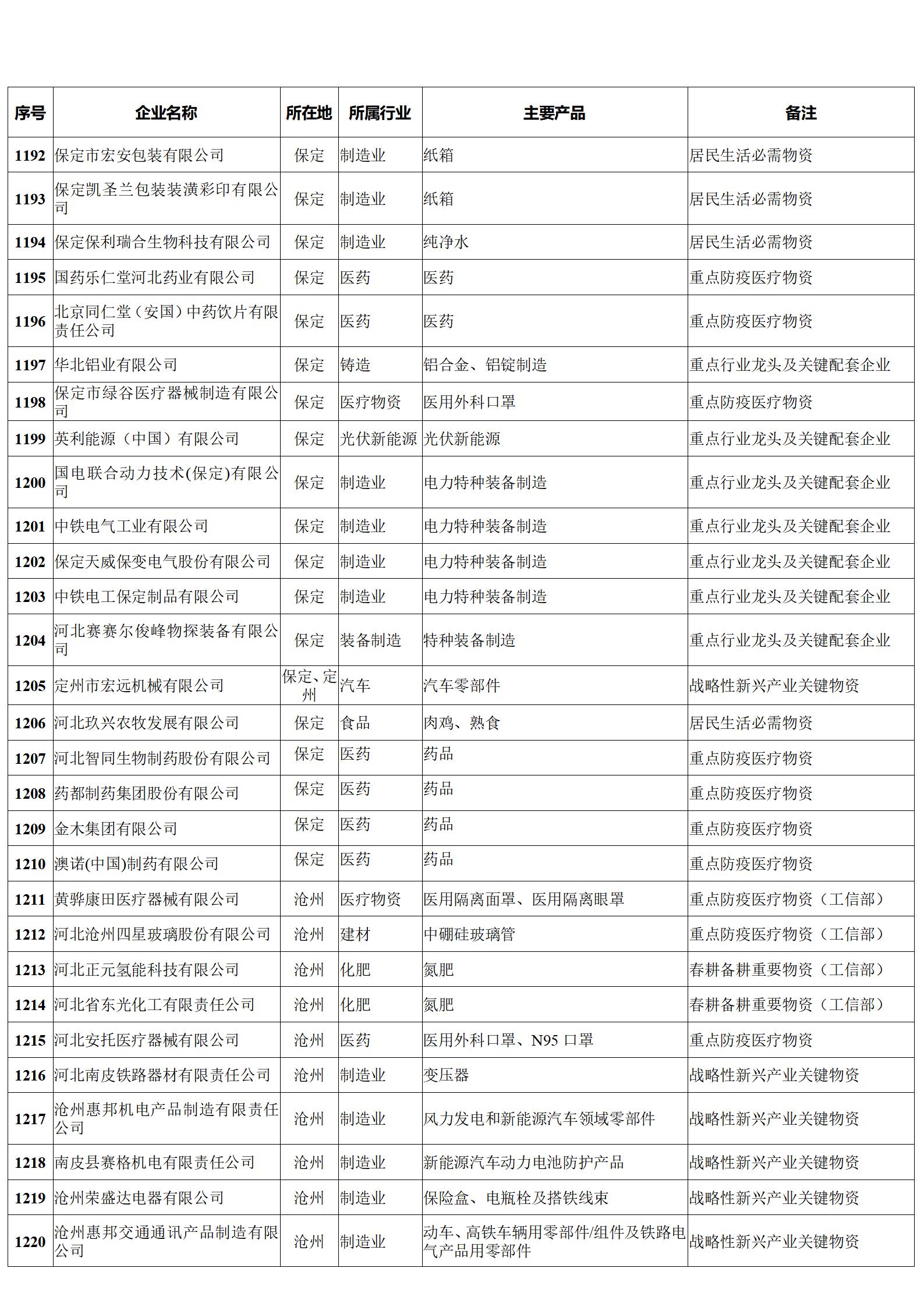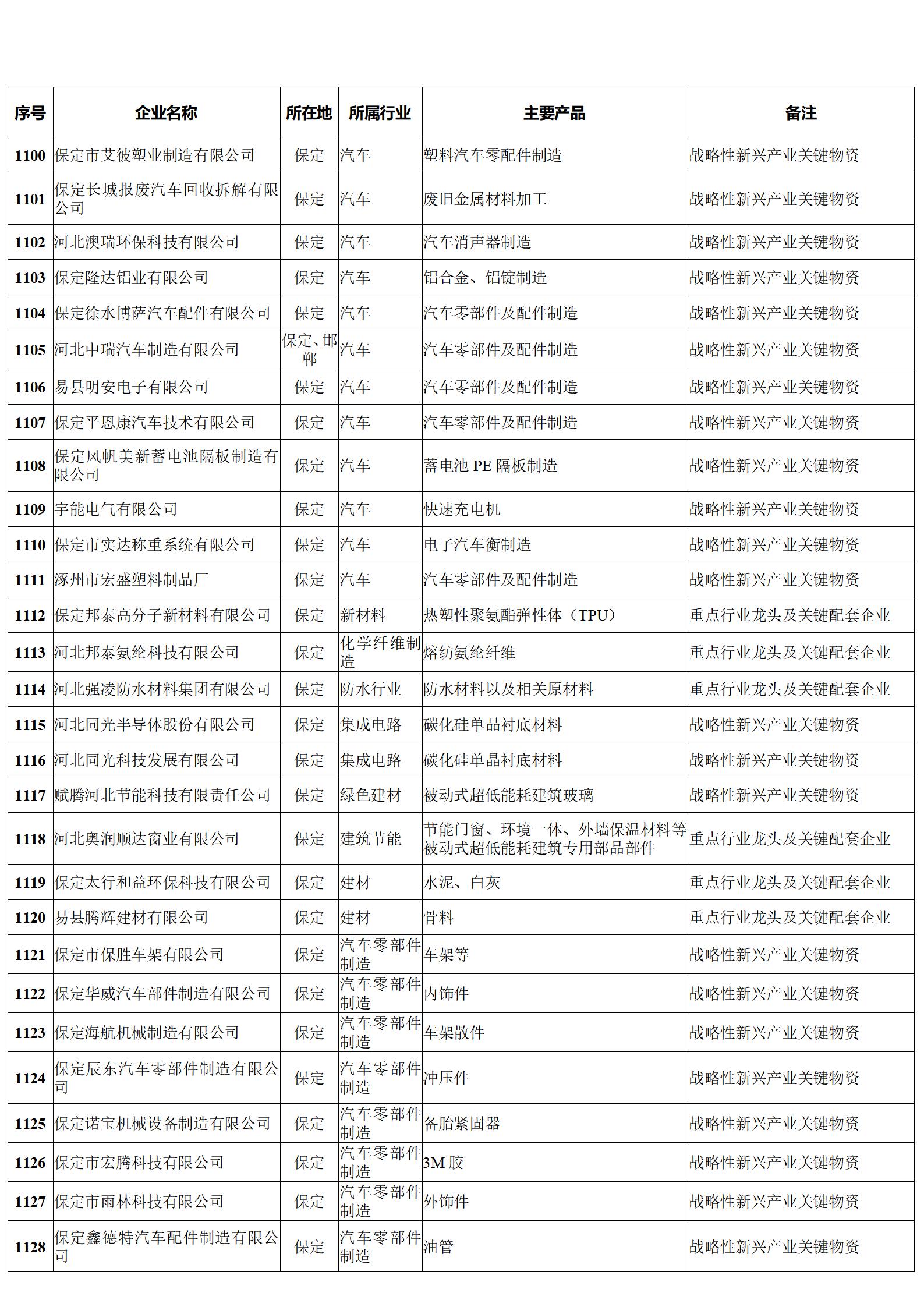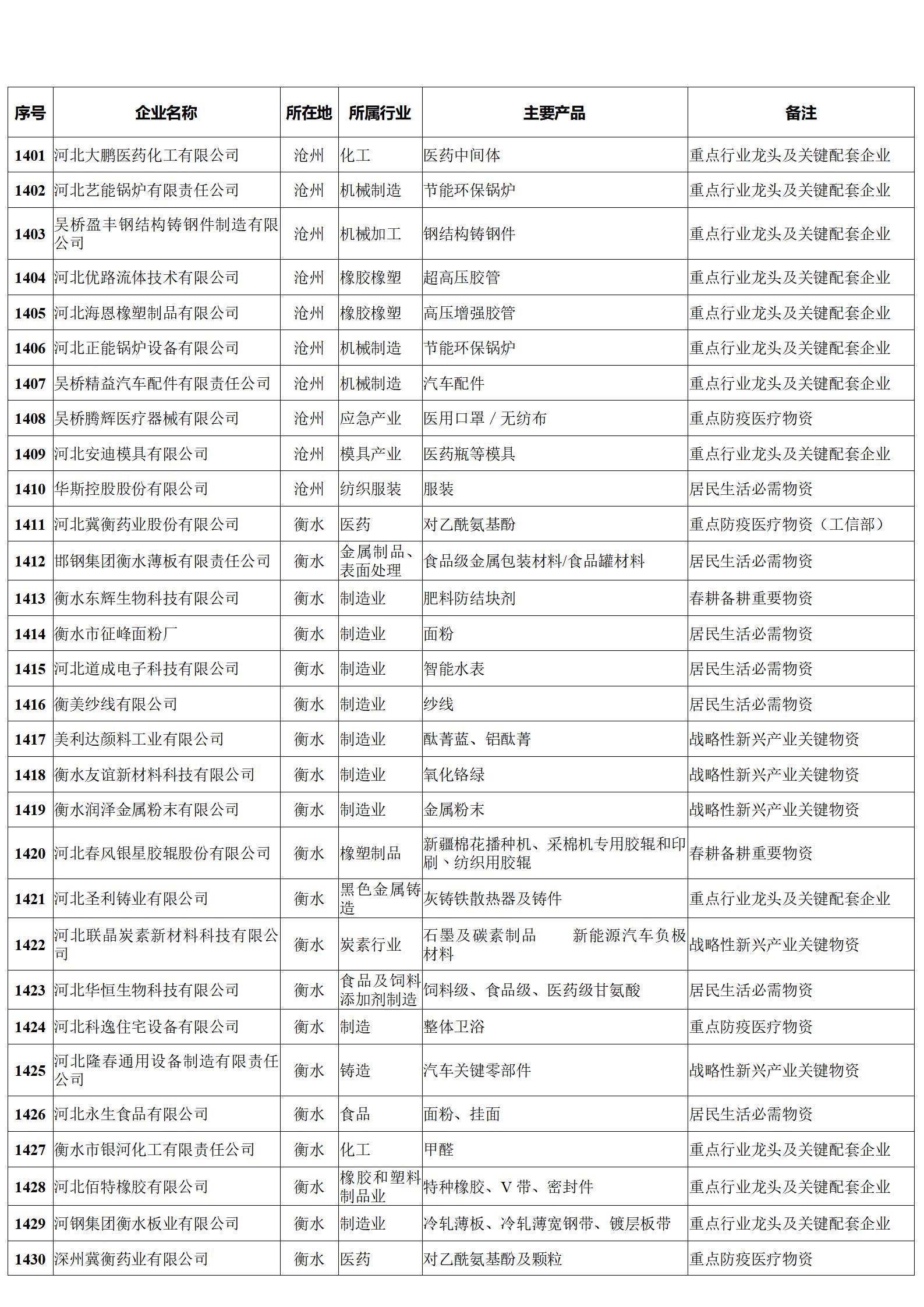 河北省重點(diǎn)產(chǎn)業(yè)鏈供應(yīng)鏈“白名單”企業(yè)