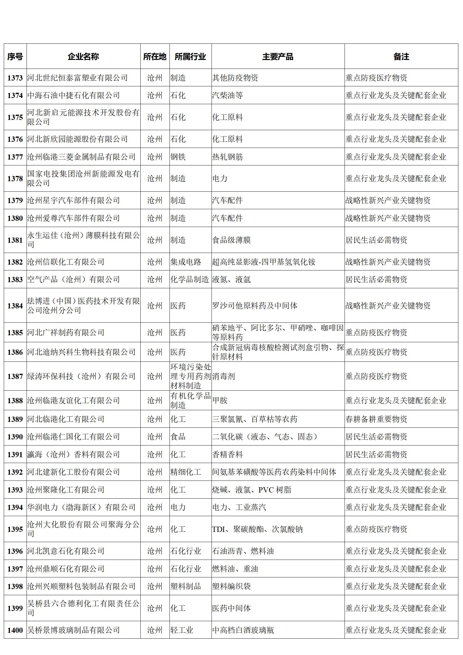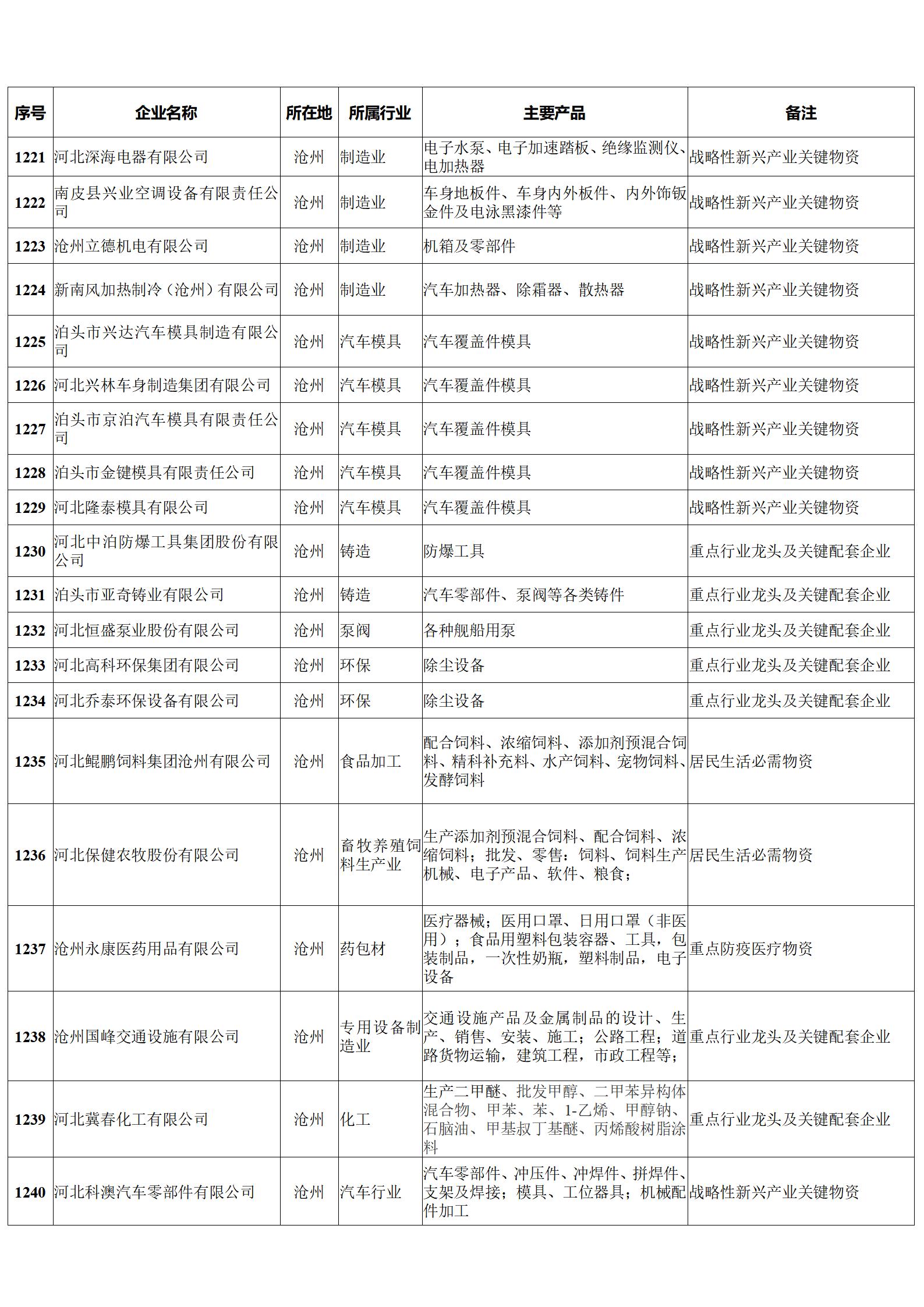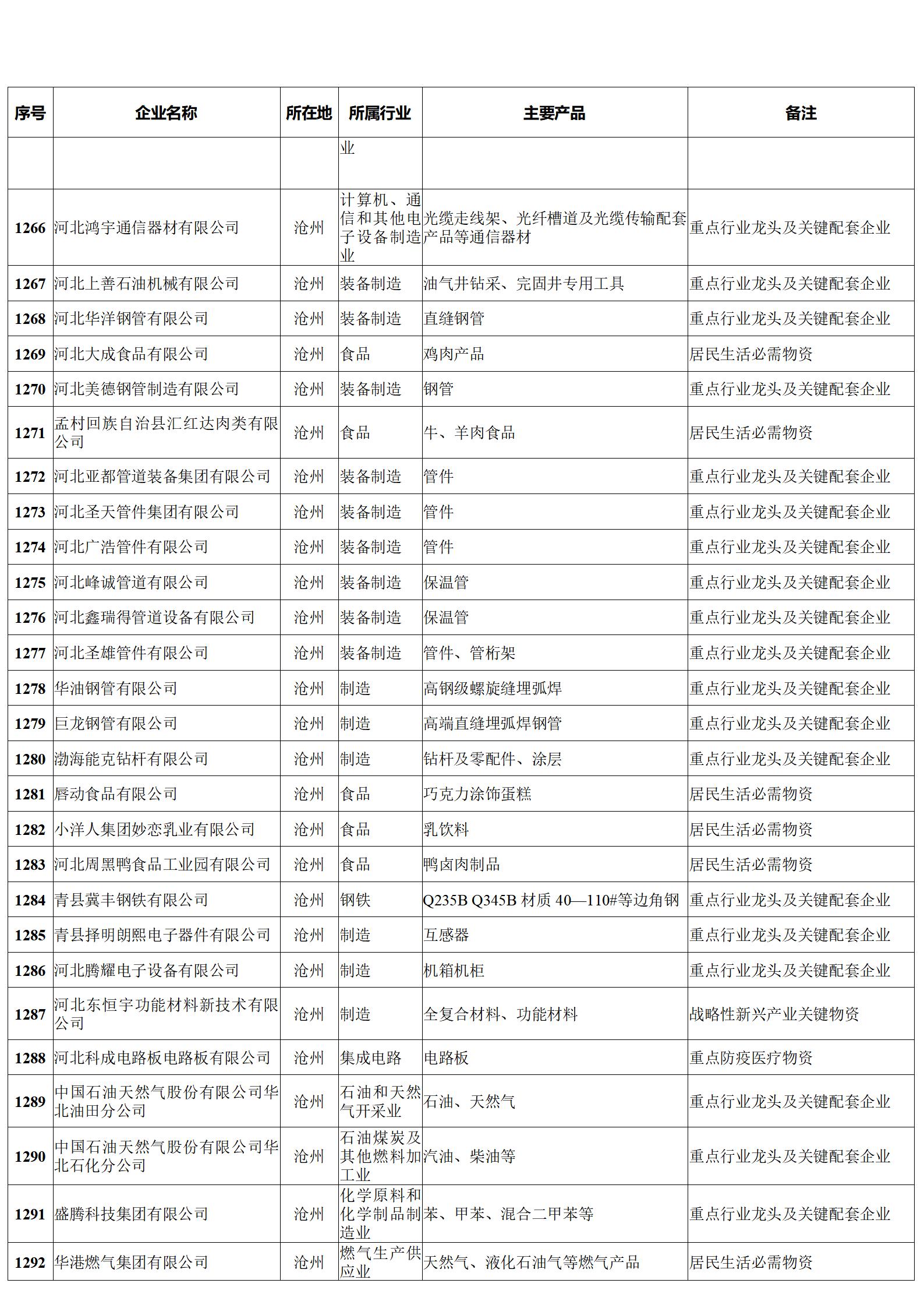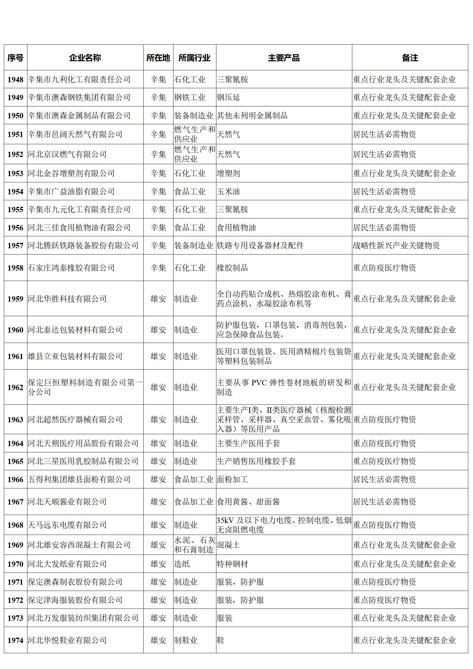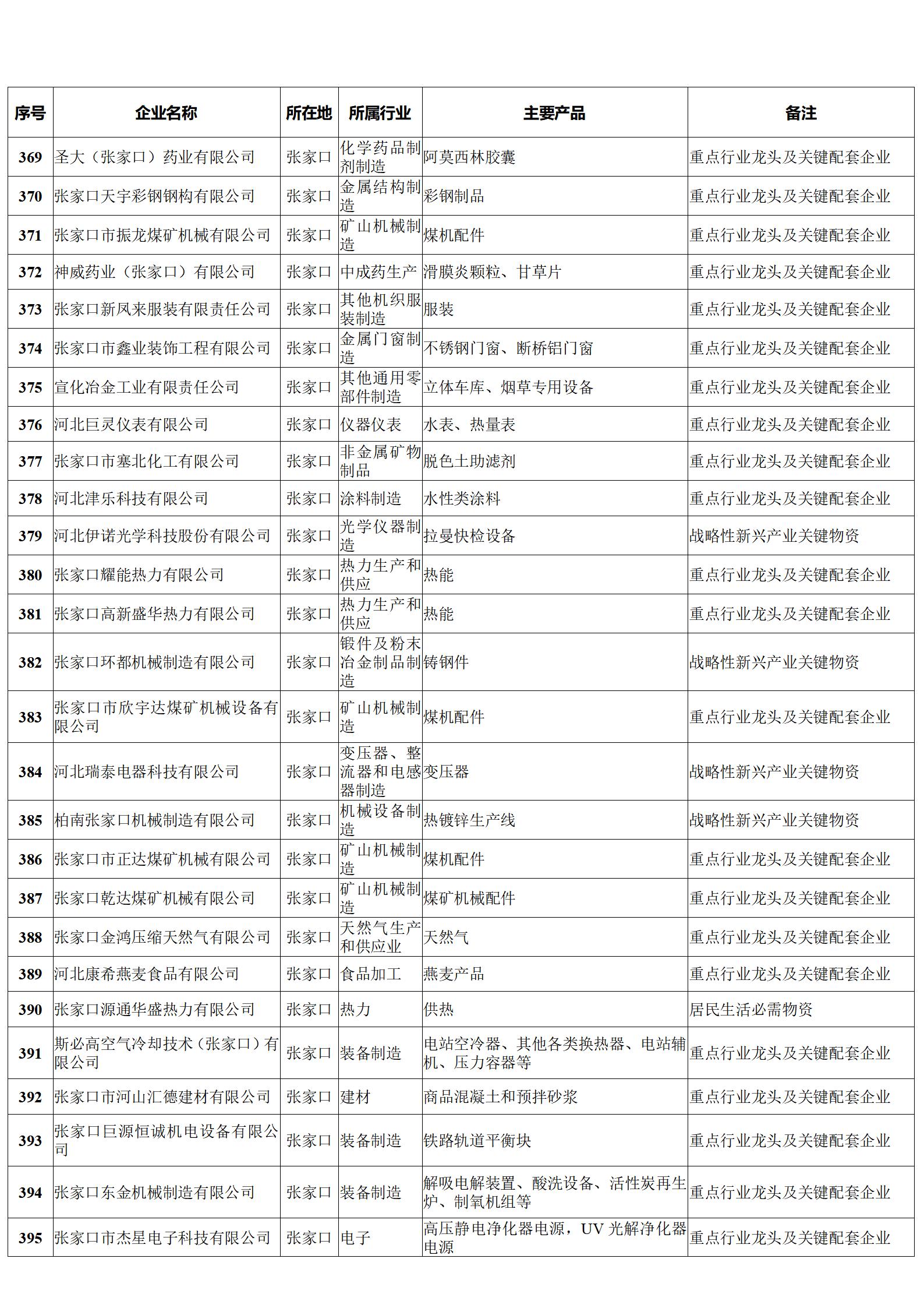 河北省重點(diǎn)產(chǎn)業(yè)鏈供應(yīng)鏈“白名單”企業(yè)