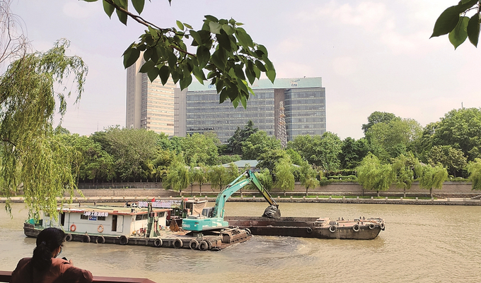 8日,南京秦淮河清淤工作全面推進(jìn),計劃對秦淮河中和橋至三汊河口閘段進(jìn)行全面清淤,總清淤量達(dá)100萬立方米。今年底,將為市民呈現(xiàn)水清岸綠的秦淮風(fēng)光。本報記者 樂濤 攝