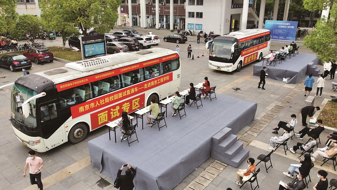 面試大巴進(jìn)高校 南京首次嘗試畢業(yè)生“見面不接觸”求職