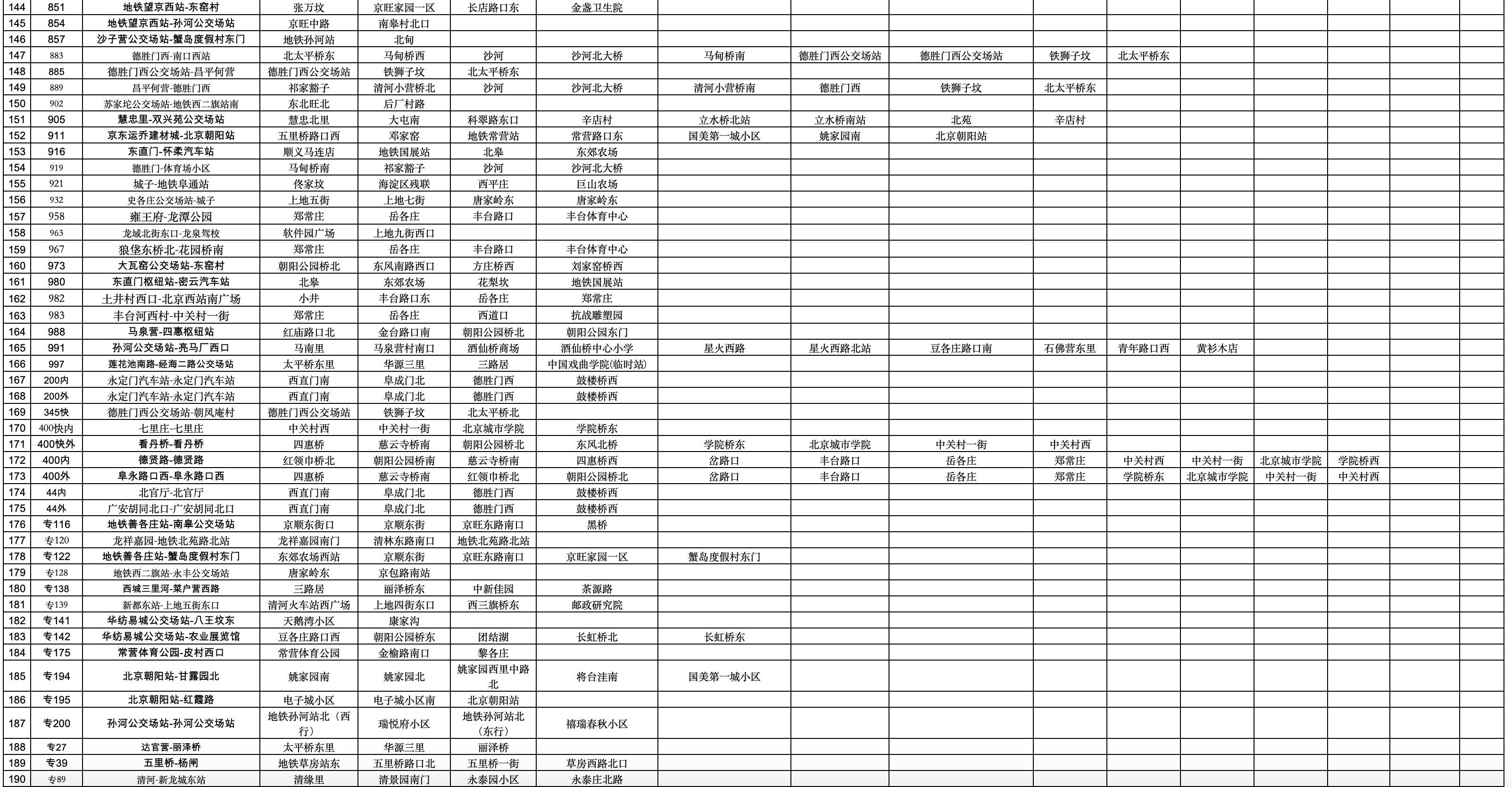 人民網(wǎng)北京5月16日電 (池夢(mèng)蕊)根據(jù)北京市疫情防控需要,為做好精細(xì)精準(zhǔn)防控,自2022年5月17日首班車起,北京市疫情防控封控區(qū)、管控區(qū)周邊的190條地面公交線路重點(diǎn)車站和54座地鐵車站(具體見附表),查驗(yàn)乘客健康碼上車。后續(xù)將結(jié)合北京市疫情防控措施進(jìn)行動(dòng)態(tài)更新。