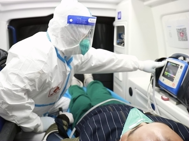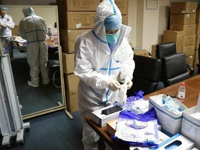 猝不及防的臨時通知打斷了急救中心工作人員的晚餐,也來不及扒拉兩口飯,立刻起身,換上全套防護裝備,一個個“大白”已然整裝待發(fā)。