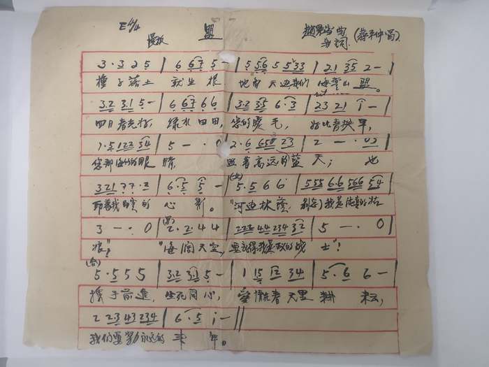 “種子落土就生根,地角天邊,我們就海誓山盟”“海闊天空,要記得我是正義的戰(zhàn)士”“攜手前進,生死同心,愛情在春天里耕耘”……一張泛黃的稿紙上寫滿了革命激情。這是二十世紀三四十年代,由趙良璋和薛介民兩位烈士共同創(chuàng)作的革命歌曲《盟》。去年3月1日,薛介民的后人將這份珍貴的手稿捐贈給了雨花臺烈士紀念館。
