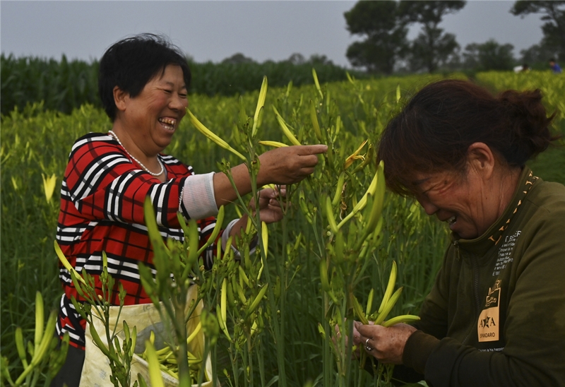 61歲的唐萬(wàn)是唐家堡村第一批黃花菜種植戶(hù)。2020年,他將家中的30畝土地流轉(zhuǎn)給當(dāng)?shù)睾献魃绶N植黃花?!耙郧白约悍N地的時(shí)候,一年下來(lái)收入有時(shí)還不到2000元。沒(méi)想到,30畝黃花地改變了我們一家的生活,現(xiàn)在每年都能有3萬(wàn)多元的收入,好的時(shí)候甚至更多?!闭f(shuō)起黃花帶來(lái)的好生活,唐萬(wàn)臉上流露出喜悅。