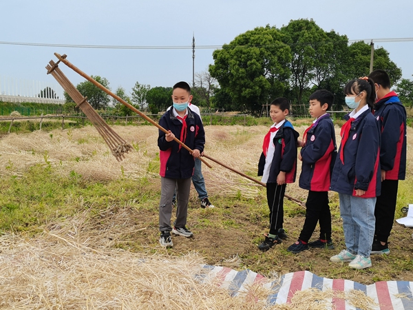 高淳區(qū)漆橋中心小學(xué)發(fā)揮地域優(yōu)勢,拓寬勞動(dòng)實(shí)踐場所,依托街道中心村農(nóng)耕文化館開展“打菜籽”研學(xué)活動(dòng)?!安倏v梿枷時(shí),前手上提,后手下壓,梿枷的轉(zhuǎn)軸循環(huán)轉(zhuǎn)動(dòng),反復(fù)拍打使油菜脫粒?!毙M廨o導(dǎo)員趙士華正詳細(xì)介紹油菜籽的收割、分離過程。通過講解,同學(xué)們對油菜籽的采收有了初步認(rèn)識。走進(jìn)田間,同學(xué)們紛紛擼起袖子,躍躍欲試。在趙士華的耐心指導(dǎo)下,同學(xué)們慢慢找到打油菜籽的正確方法,連枷不停地拍打下去,一粒粒油菜籽從油菜莢中躍出。同學(xué)們在了解農(nóng)耕知識、學(xué)習(xí)農(nóng)耕技能的同時(shí),體驗(yàn)勞動(dòng)的快樂。