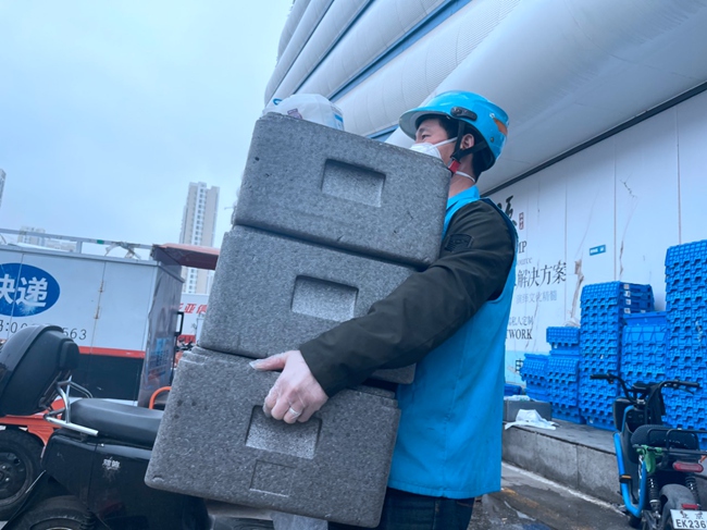 線上訂單量持續(xù)升高,很多盒馬門店配送小哥滿負荷上路。