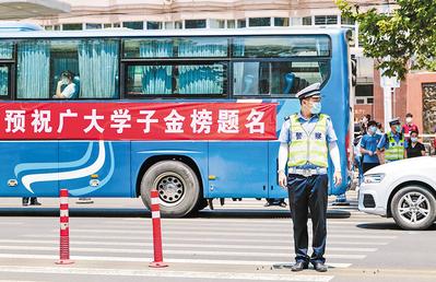 “為保證高考考生順利安全抵達考點,考試期間,我們在考點附近安排部署執(zhí)勤警力,并根據(jù)考試時間提前一個半小時到崗到位?!痹谑仪f市第六中學考點執(zhí)勤的交警告訴記者,考點位于主干路,周邊商超、單位較多,容易出現(xiàn)擁堵,為方便考生,交警根據(jù)車流量情況,對社會車輛采取間斷放行等措施進行有效分流,避免考點門前路段出現(xiàn)擁堵。