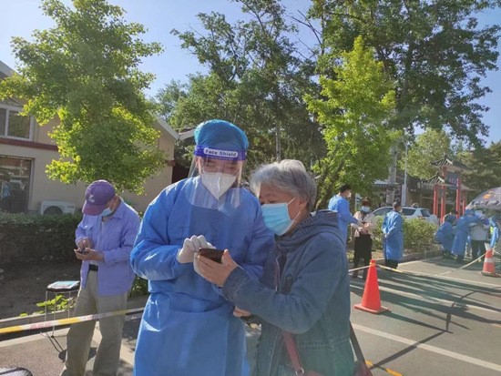 “五一”假期第一天,在通州臨河里街道華遠(yuǎn)銘悅南區(qū)核酸檢測(cè)點(diǎn),北京金控集團(tuán)下沉干部王超拍照、核對(duì)、詢問(wèn),迅速完成登記工作。老人聽力不佳,他便提高音量、耐心解釋;居民排隊(duì)距離過(guò)密,他向社區(qū)建議調(diào)整排隊(duì)通道,保證安全。相同的輸入動(dòng)作、相似的問(wèn)答話語(yǔ)王超每天要重復(fù)近千次。